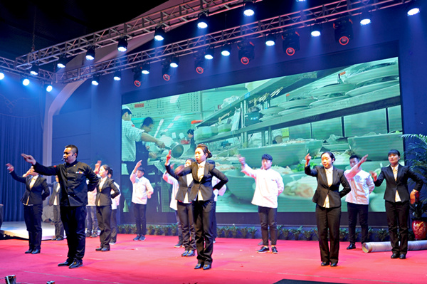 迪尼斯酒店伊川店后廚員工帶來(lái)的“走心小品”《傻大個(gè)成長(zhǎng)之路》。伴隨著開(kāi)元集團(tuán)不斷的發(fā)展壯大,我們的員工也在快速成長(zhǎng),還有幾天就要過(guò)年了,但是他們已經(jīng)做好了在酒店備戰(zhàn)年夜飯的充分準(zhǔn)備,他們敬業(yè)、奉獻(xiàn)的精神值得我們學(xué)習(xí)和尊敬。