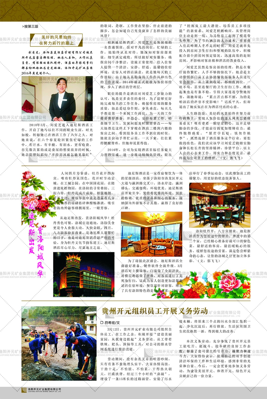 洛陽(yáng)開(kāi)元礦業(yè)集團(tuán)有限公司簡(jiǎn)介洛陽(yáng)開(kāi)元礦業(yè)集團(tuán)有限公司,始成立于2006年,位于洛陽(yáng)市開(kāi)元大道269號(hào)。集團(tuán)旗下共有五余家全資子公司,業(yè)務(wù)涉及有色金屬礦山開(kāi)發(fā)、礦產(chǎn)品購(gòu)銷(xiāo)與進(jìn)出口貿(mào)易、房地產(chǎn)開(kāi)發(fā)、文化藝術(shù)、企業(yè)管理與咨詢(xún)、資本投資等多個(gè)領(lǐng)域。民建河南省委委員、民建河南省委企業(yè)委副主任、民建洛陽(yáng)市委委員、企業(yè)委主任、洛陽(yáng)民建企業(yè)家協(xié)會(huì)會(huì)長(zhǎng)許明月是公司創(chuàng)始人,現(xiàn)任洛陽(yáng)開(kāi)元礦業(yè)集團(tuán)有限公司董事長(zhǎng)。在礦業(yè)領(lǐng)域,洛陽(yáng)開(kāi)元礦業(yè)集團(tuán)擁有多家實(shí)力雄厚的子公司:貴州開(kāi)元礦業(yè)有限公司探、采礦權(quán)面積共11.33平方公里;興??h銅鑫礦業(yè)有限公司探礦權(quán)面積8.76平方公里,礦山資源潛力巨大;2021年,開(kāi)元集團(tuán)與盧氏中科礦業(yè)有限公司開(kāi)展戰(zhàn)略合作。盧氏中科礦業(yè)有限公司專(zhuān)注于有色金屬的浮選、加工和銷(xiāo)售,擁有強(qiáng)大的技術(shù)支撐平臺(tái),是集探、采、選、冶、研為一體的中大型綜合礦業(yè)企業(yè)。目前,盧氏中科王家河1000噸選礦廠(chǎng)已成功投產(chǎn),雙河金礦、柳關(guān)欒盧鉛鋅礦相繼順利開(kāi)工,樓房銀礦與圪老灣鉛鋅礦的深部探礦重大突破,標(biāo)志著礦山版圖取得重大進(jìn)展,為開(kāi)元集團(tuán)后續(xù)發(fā)展奠定了堅(jiān)實(shí)基礎(chǔ)。在文化傳媒領(lǐng)域,洛陽(yáng)市明月美術(shù)館通過(guò)豐富多樣的藝術(shù)展覽、學(xué)術(shù)研討和公共教育活動(dòng),努力打造一個(gè)集展覽、交流、教育、研究為一體的綜合性藝術(shù)平臺(tái)。此外,在金融投資領(lǐng)域,開(kāi)元集團(tuán)旗下的北京明峰資本管理有限公司專(zhuān)注于投資具有高增長(zhǎng)潛力的優(yōu)秀企業(yè),特別是高科技、新能源、環(huán)保等新興產(chǎn)業(yè),為客戶(hù)提供個(gè)性化的資產(chǎn)配置服務(wù)。在做好企業(yè)經(jīng)營(yíng)的同時(shí),開(kāi)元集團(tuán)始終不忘企業(yè)的社會(huì)責(zé)任和家國(guó)情懷,以突出的愛(ài)心公益事跡,開(kāi)展了一系列公益慈善活動(dòng):“民建林”公益事業(yè)通過(guò)“思源基金”“幫幫公益”線(xiàn)上公益平臺(tái),與眾多愛(ài)心人士籌措資金20余萬(wàn)元;資助541名貧困大學(xué)生共計(jì)270余萬(wàn)元,推進(jìn)“數(shù)字助力——河南AI人才培養(yǎng)”;捐款10萬(wàn)元,馳援京津冀、黑龍江洪水地質(zhì)災(zāi)害……公司于2017年底被洛陽(yáng)市慈善總會(huì)評(píng)為“洛陽(yáng)慈善風(fēng)云榜——十大愛(ài)心集體”。洛陽(yáng)開(kāi)元礦業(yè)集團(tuán)有限公司秉承持續(xù)發(fā)展理念,憑借多年來(lái)良好的企業(yè)信譽(yù)與經(jīng)營(yíng)業(yè)績(jī),與全國(guó)多家企業(yè)建立了良好合作關(guān)系,受到社會(huì)各界的一致好評(píng),多次榮獲“納稅標(biāo)兵”“先進(jìn)企業(yè)”“招商引資模范企業(yè)”等榮譽(yù)稱(chēng)號(hào)。回望來(lái)時(shí)路,開(kāi)元人勠力同心,以“闖”的精神和“創(chuàng)”的勁頭,一路披荊斬棘,踏過(guò)千山萬(wàn)水;展望新未來(lái),開(kāi)元人凝心聚力,不執(zhí)于“舊”,無(wú)畏于“新”,秉承“勇于跨越,追求卓越”的企業(yè)精神,乘著國(guó)家高質(zhì)量發(fā)展新征程的東風(fēng),跨過(guò)高山,越過(guò)大海,向著集團(tuán)多元化、國(guó)際化的目標(biāo),逐夢(mèng)遠(yuǎn)航,跨越前行!