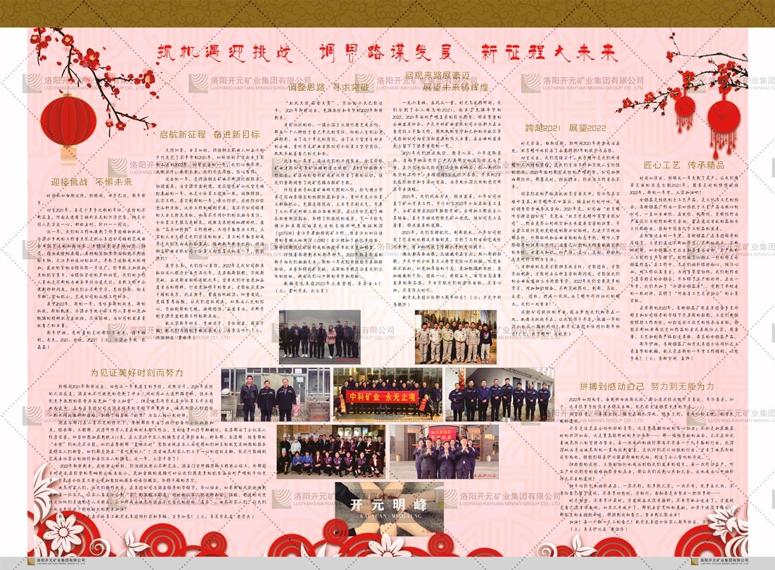 洛陽開元礦業(yè)集團(tuán)有限公司簡(jiǎn)介洛陽開元礦業(yè)集團(tuán)有限公司,始成立于2006年,位于洛陽市開元大道269號(hào)。集團(tuán)旗下共有五余家全資子公司,業(yè)務(wù)涉及有色金屬礦山開發(fā)、礦產(chǎn)品購銷與進(jìn)出口貿(mào)易、房地產(chǎn)開發(fā)、文化藝術(shù)、企業(yè)管理與咨詢、資本投資等多個(gè)領(lǐng)域。民建河南省委委員、民建河南省委企業(yè)委副主任、民建洛陽市委委員、企業(yè)委主任、洛陽民建企業(yè)家協(xié)會(huì)會(huì)長許明月是公司創(chuàng)始人,現(xiàn)任洛陽開元礦業(yè)集團(tuán)有限公司董事長。在礦業(yè)領(lǐng)域,洛陽開元礦業(yè)集團(tuán)擁有多家實(shí)力雄厚的子公司:貴州開元礦業(yè)有限公司探、采礦權(quán)面積共11.33平方公里;興??h銅鑫礦業(yè)有限公司探礦權(quán)面積8.76平方公里,礦山資源潛力巨大;2021年,開元集團(tuán)與盧氏中科礦業(yè)有限公司開展戰(zhàn)略合作。盧氏中科礦業(yè)有限公司專注于有色金屬的浮選、加工和銷售,擁有強(qiáng)大的技術(shù)支撐平臺(tái),是集探、采、選、冶、研為一體的中大型綜合礦業(yè)企業(yè)。目前,盧氏中科王家河1000噸選礦廠已成功投產(chǎn),雙河金礦、柳關(guān)欒盧鉛鋅礦相繼順利開工,樓房銀礦與圪老灣鉛鋅礦的深部探礦重大突破,標(biāo)志著礦山版圖取得重大進(jìn)展,為開元集團(tuán)后續(xù)發(fā)展奠定了堅(jiān)實(shí)基礎(chǔ)。在文化傳媒領(lǐng)域,洛陽市明月美術(shù)館通過豐富多樣的藝術(shù)展覽、學(xué)術(shù)研討和公共教育活動(dòng),努力打造一個(gè)集展覽、交流、教育、研究為一體的綜合性藝術(shù)平臺(tái)。此外,在金融投資領(lǐng)域,開元集團(tuán)旗下的北京明峰資本管理有限公司專注于投資具有高增長潛力的優(yōu)秀企業(yè),特別是高科技、新能源、環(huán)保等新興產(chǎn)業(yè),為客戶提供個(gè)性化的資產(chǎn)配置服務(wù)。在做好企業(yè)經(jīng)營的同時(shí),開元集團(tuán)始終不忘企業(yè)的社會(huì)責(zé)任和家國情懷,以突出的愛心公益事跡,開展了一系列公益慈善活動(dòng):“民建林”公益事業(yè)通過“思源基金”“幫幫公益”線上公益平臺(tái),與眾多愛心人士籌措資金20余萬元;資助541名貧困大學(xué)生共計(jì)270余萬元,推進(jìn)“數(shù)字助力——河南AI人才培養(yǎng)”;捐款10萬元,馳援京津冀、黑龍江洪水地質(zhì)災(zāi)害……公司于2017年底被洛陽市慈善總會(huì)評(píng)為“洛陽慈善風(fēng)云榜——十大愛心集體”。洛陽開元礦業(yè)集團(tuán)有限公司秉承持續(xù)發(fā)展理念,憑借多年來良好的企業(yè)信譽(yù)與經(jīng)營業(yè)績(jī),與全國多家企業(yè)建立了良好合作關(guān)系,受到社會(huì)各界的一致好評(píng),多次榮獲“納稅標(biāo)兵”“先進(jìn)企業(yè)”“招商引資模范企業(yè)”等榮譽(yù)稱號(hào)?;赝麃頃r(shí)路,開元人勠力同心,以“闖”的精神和“創(chuàng)”的勁頭,一路披荊斬棘,踏過千山萬水;展望新未來,開元人凝心聚力,不執(zhí)于“舊”,無畏于“新”,秉承“勇于跨越,追求卓越”的企業(yè)精神,乘著國家高質(zhì)量發(fā)展新征程的東風(fēng),跨過高山,越過大海,向著集團(tuán)多元化、國際化的目標(biāo),逐夢(mèng)遠(yuǎn)航,跨越前行!
